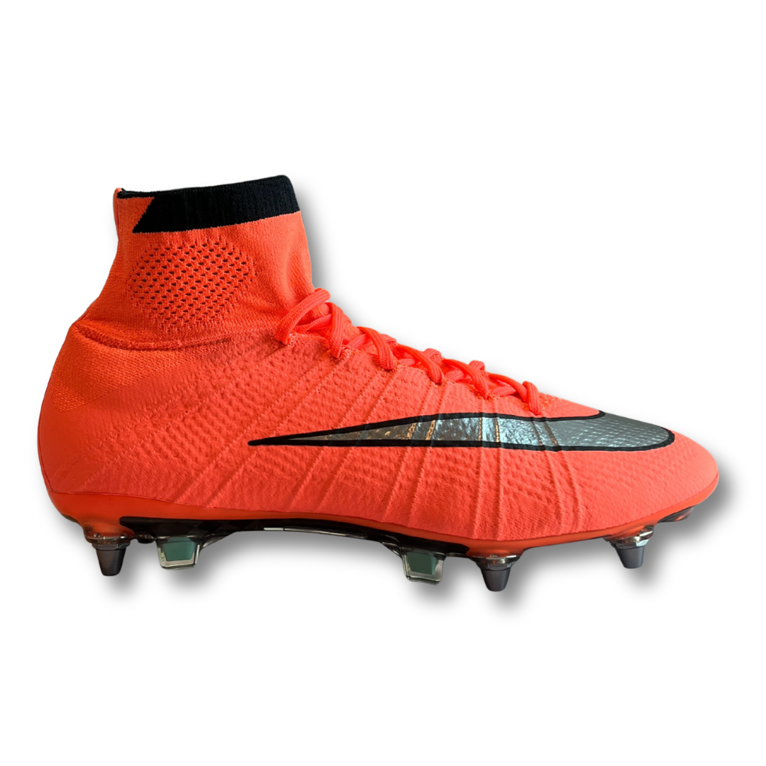 The Mercurial Superfly IV set the standard for the coming evolution of football boots. Its high-collar design and Flyknit construction was a revolutionary step forward. Adidas had experimented with knitted we uppers prior, yet Nike perfected the material and made it their own. Debuted on the biggest stage at the 2014 World Cup alongside the Magista Obra, the Superfly IV was an instant hit.
